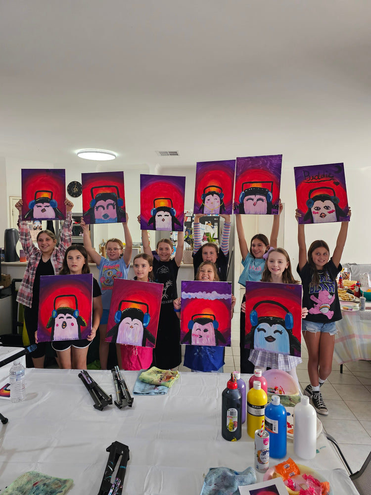 Looking for something fun to do for Kids and Teen Birthday Party, Vacation Care and Family Events. We come to you and provide all the art supplies and a step by step guided painting session.