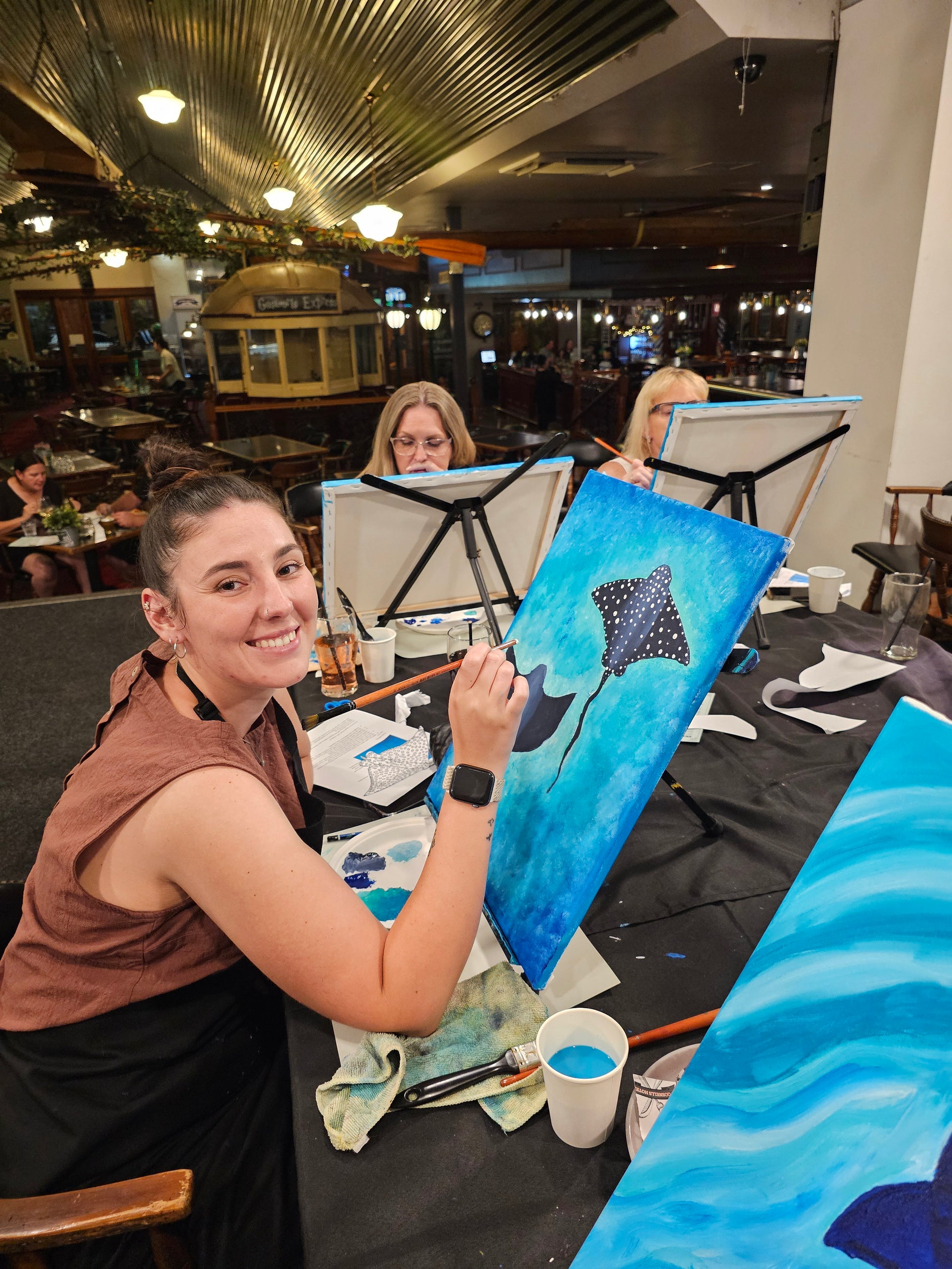 Whether you’re a beach lover, marine life fan, or just vibing with cool coastal blues — this class is the perfect way to unwind, sip, and paint your own underwater masterpiece.